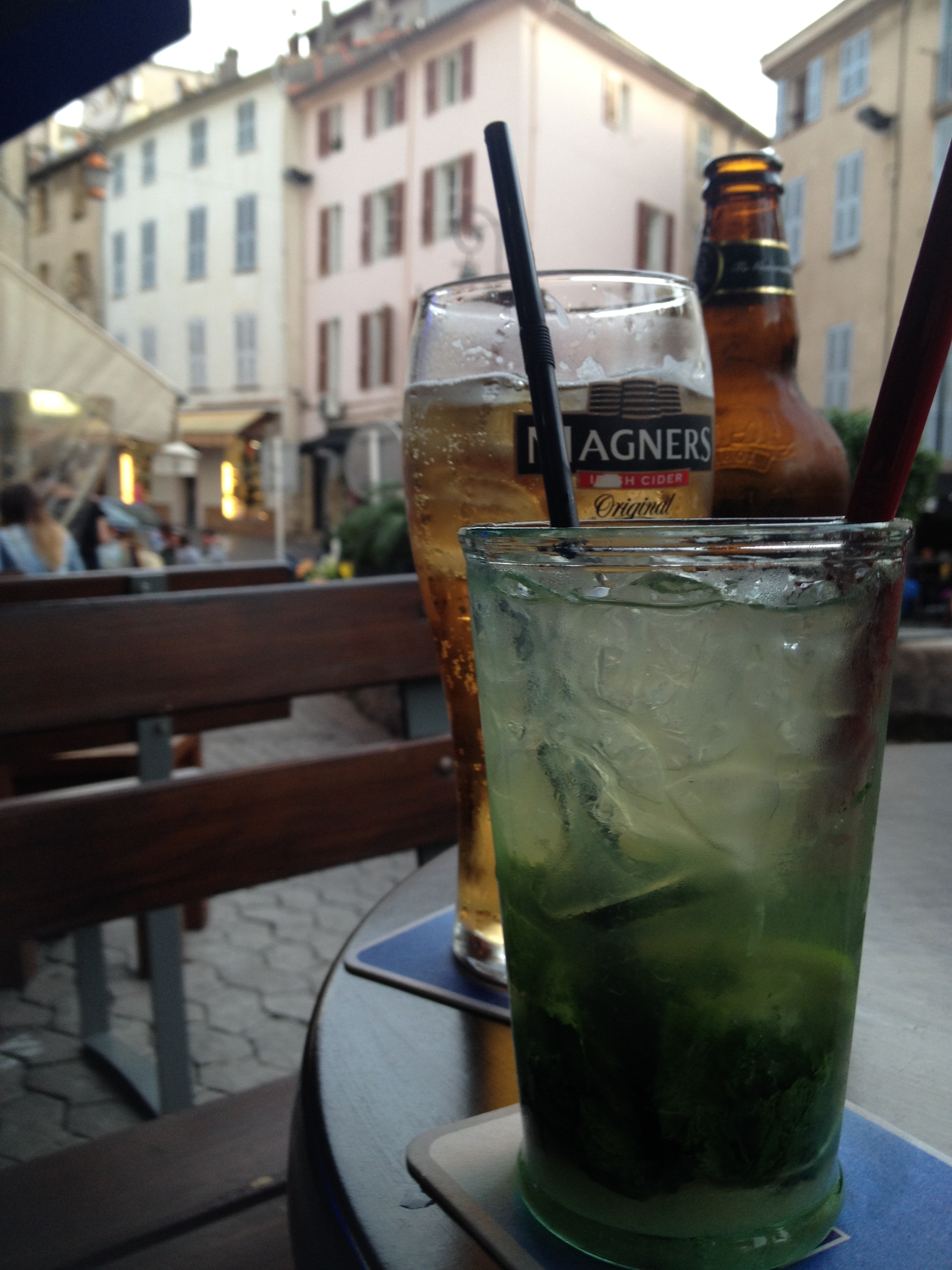 Price: There are no cheap places at the Cote d’Azur. They pretty much follow the standard prices of the area so I can’t call them expensive. Around 6 Euros will get you a pint, Cocktails are around 8-10 Euros.